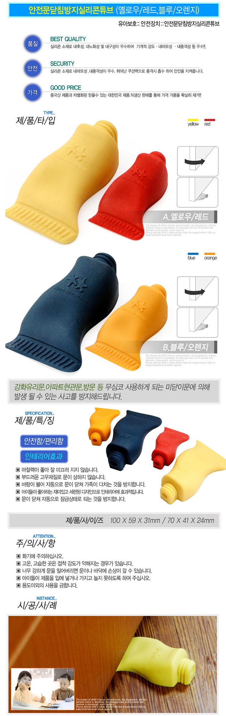 [LP]½Ç¸®ÄÜÆ©ºê ¾ÈÀü¹®´Ýħ¹æÁö(100x53x31mm/70x41x24mm,µµ¾î½ºÅäÆÛ/¹®´ÝÈû¹æÁö/¼Õ³¢ÀÓ¹æÁö)(Child safety door stopper)=>Á¦Ç°´ÜÁ¾!