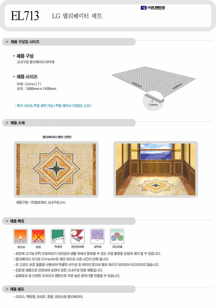 [½º¿Í´Ï] LG ¿¤·¹º£ÀÌÅÍ ¸ÅÆ® (EL 713)140cm x 160cm ±âÁØ(½Ã°øºñ º°µµ)