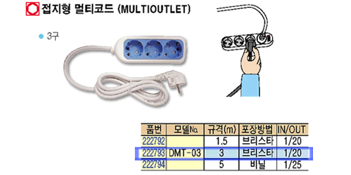 [DAJEON]Á¢ÁöÇü ¸ÖƼÄÚÆ®3±¸ DMT-03 (±Ô°Ý3m)