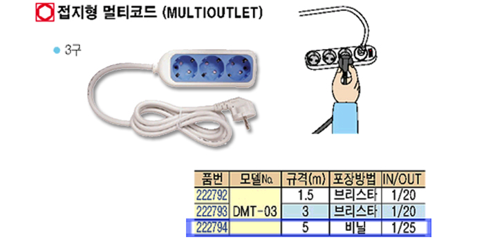 [DAJEON]Á¢ÁöÇü ¸ÖƼÄÚÆ®3±¸ DMT-03 (±Ô°Ý5m)