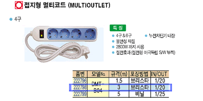 [DAJEON]Á¢ÁöÇü ¸ÖƼÄÚÆ®4±¸ DMT-B04 (±Ô°Ý3m)