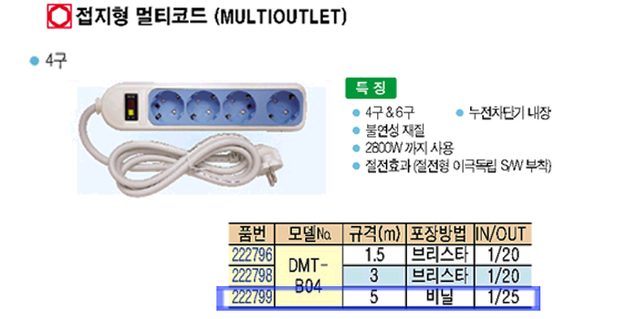 [DAJEON]Á¢ÁöÇü ¸ÖƼÄÚÆ®4±¸ DMT-B04 (±Ô°Ý5m)