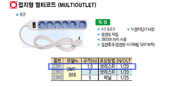 [DAJEON]Á¢ÁöÇü ¸ÖƼÄÚÆ®6±¸ DMT-B06 (±Ô°Ý1.5m)