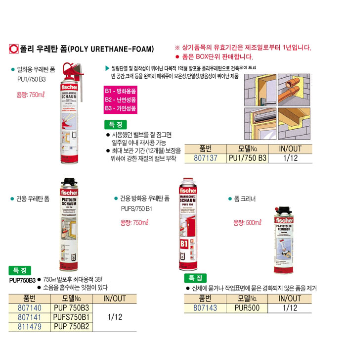 [ÇǼÅ] Æú¸® ¿ì·¹Åº Æû((PU1/750 B3, 750ml) (POLY URETHANE FOAM/FOAM SEALANT) ÀÏȸ¿ë ¿ì·¹Åº Æû(12°³¹Ú½º ´ÜÀ§ÆÇ¸Å)