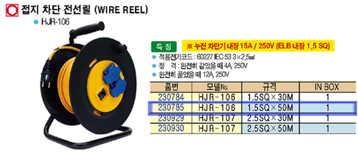 [¼¼ÀÌÁî]Á¢Áö Â÷´Ü Àü¼±¸±(HJR-106,1.5SQx3Corex50¹ÌÅÍ)(Cord Reel)