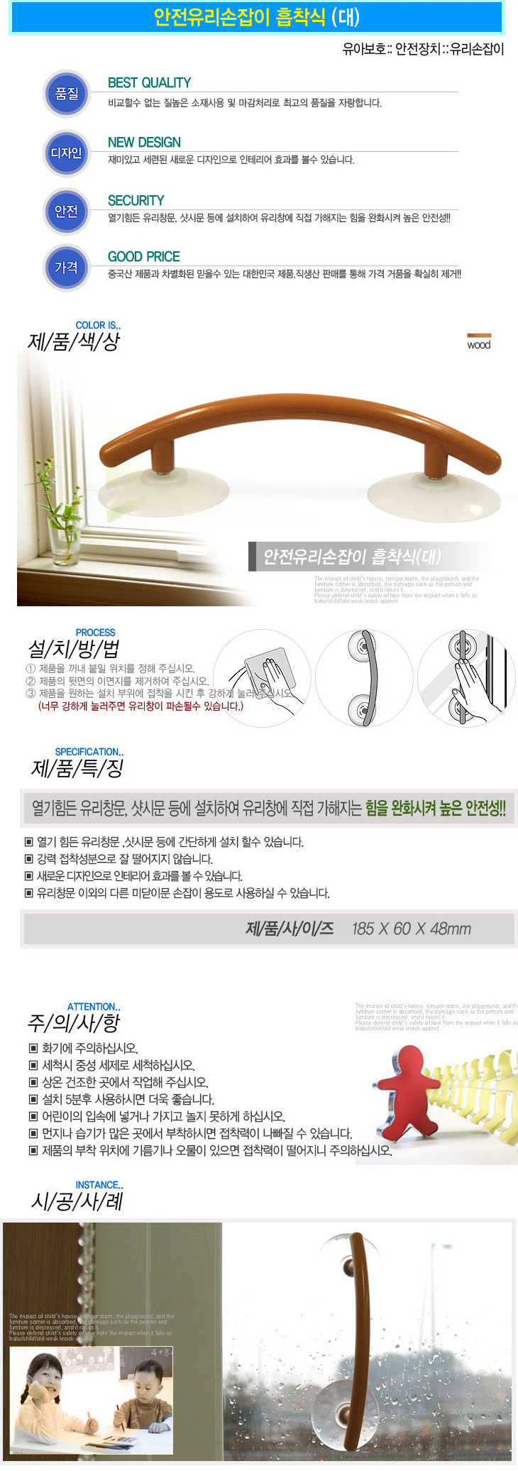 [LP]ÈíÂø½Ä ´ëÇü ¾ÈÀüÀ¯¸®¼ÕÀâÀÌ(185x60x48mm, 2°³ ¹­À½)(Safety Glass Handle/Sliding Door Handle)