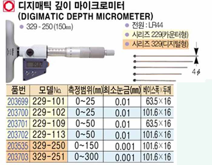 [mitutoyo] µðÁö¸Åƽ ±íÀÌ ¸¶ÀÌÅ©·Î ¹ÌÅÍ (DIGIMATIC DEPTH MICROMETER) (329-251)