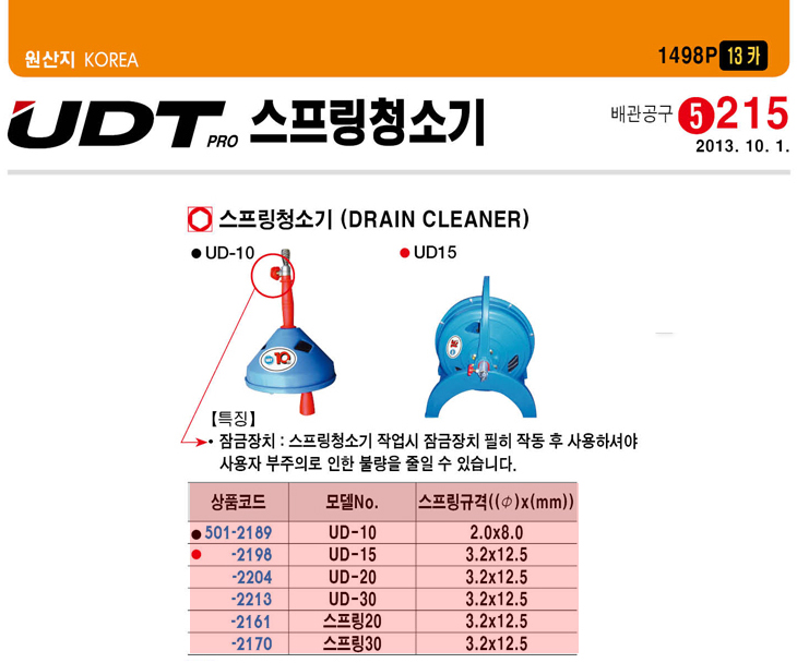 [UDT] ½ºÇÁ¸µÃ»¼Ò±â(UD-15, 15¹ÌÅÍ 3.2¥Õ x 1.25mm)(Drain Clearner)