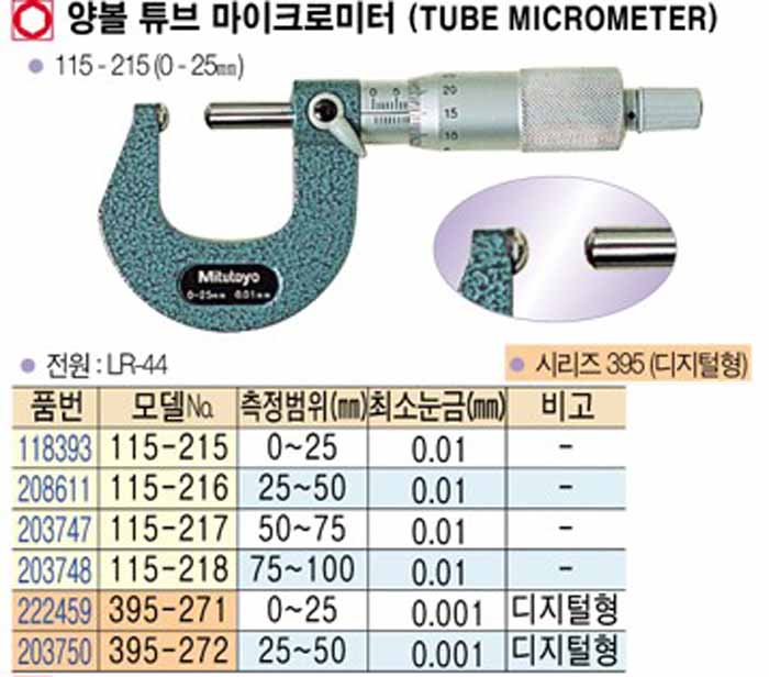 [mitutoyo] ¾çº¼ Æ©ºê ¸¶ÀÌÅ©·Î ¹ÌÅÍ (TUBE MICROMRTER) 115-218