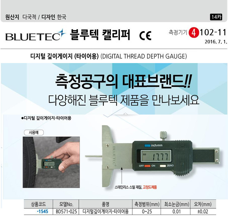 [ºí·çÅØ] ŸÀ̾î¿ë µðÁöÅÐ ±íÀ̰ÔÀÌÁö(BD571-025, ¹üÀ§:0~25mm, ÃÖ¼Ò´«±Ý:0.01mm)