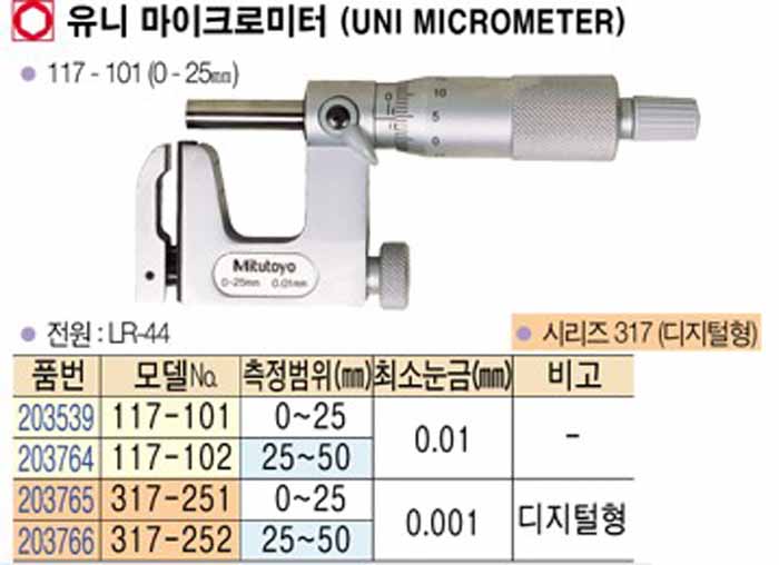 [mitutoyo] À¯´Ï ¸¶ÀÌÅ©·Î ¹ÌÅÍ (UNI MICROMRTER) 117-101