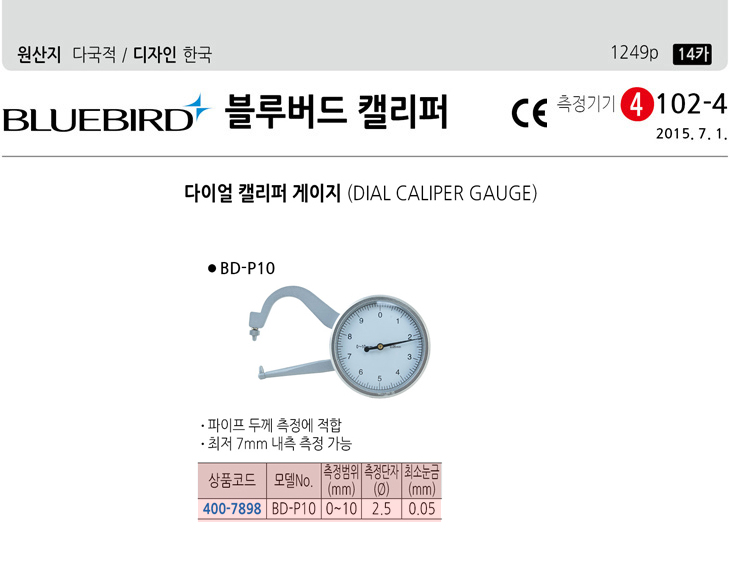 [ºí·ç¹öµå] ´ÙÀÌ¾ó °¶¸®ÆÛ °ÔÀÌÁö(BD-P10, ÆÄÀÌÇÁµÎ²²ÃøÁ¤, ÃøÁ¤¹üÀ§:0~10mm)(Dial Caliper Gauge)