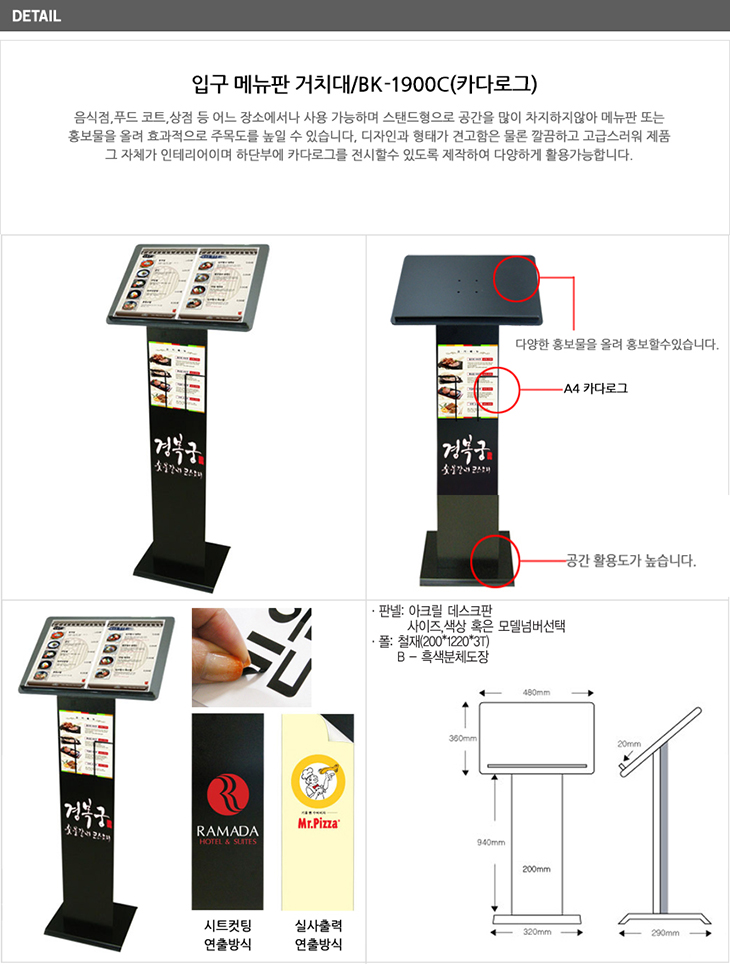 [ÀÏÁø] ÀÔ±¸ ¸Þ´ºÆÇ°ÅÄ¡´ë(BK-1900C ºí·¢, īŻ·Î±× ¼±¹ÝÆ÷ÇÔ, À½½ÄÁ¡/ǪµåÄÚÆ®/»óÁ¡ ¸Þ´ºÆÇ °ÅÄ¡´ë, 480x360mm)
