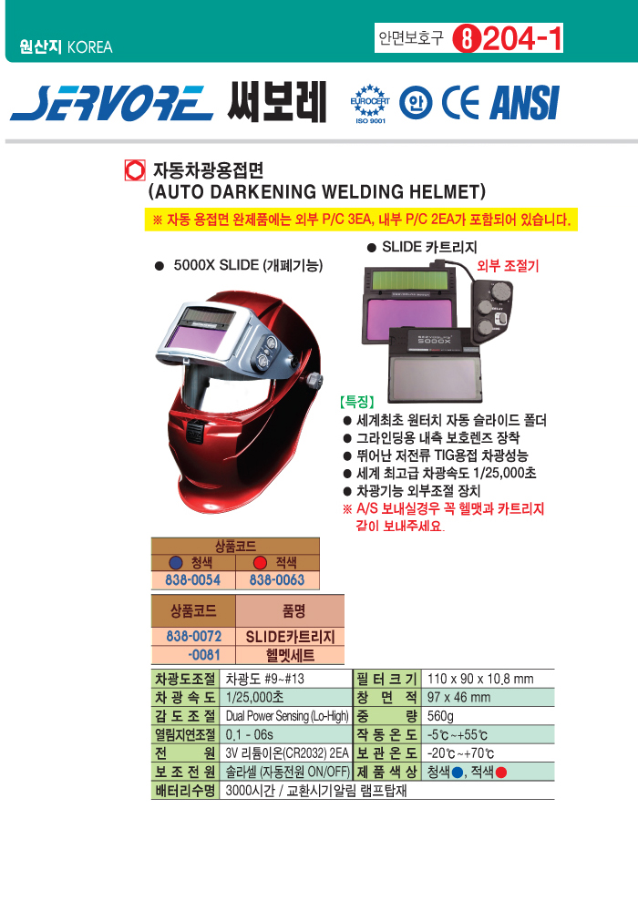 [½áº¸·¹] ÀÚµ¿¸éīƮ¸®Áö(SV-5000X-SLIDE īƮ¸®Áö)(AUTO DARKENING WELDING HELMET)=>Á¦Ç°´ÜÁ¾!