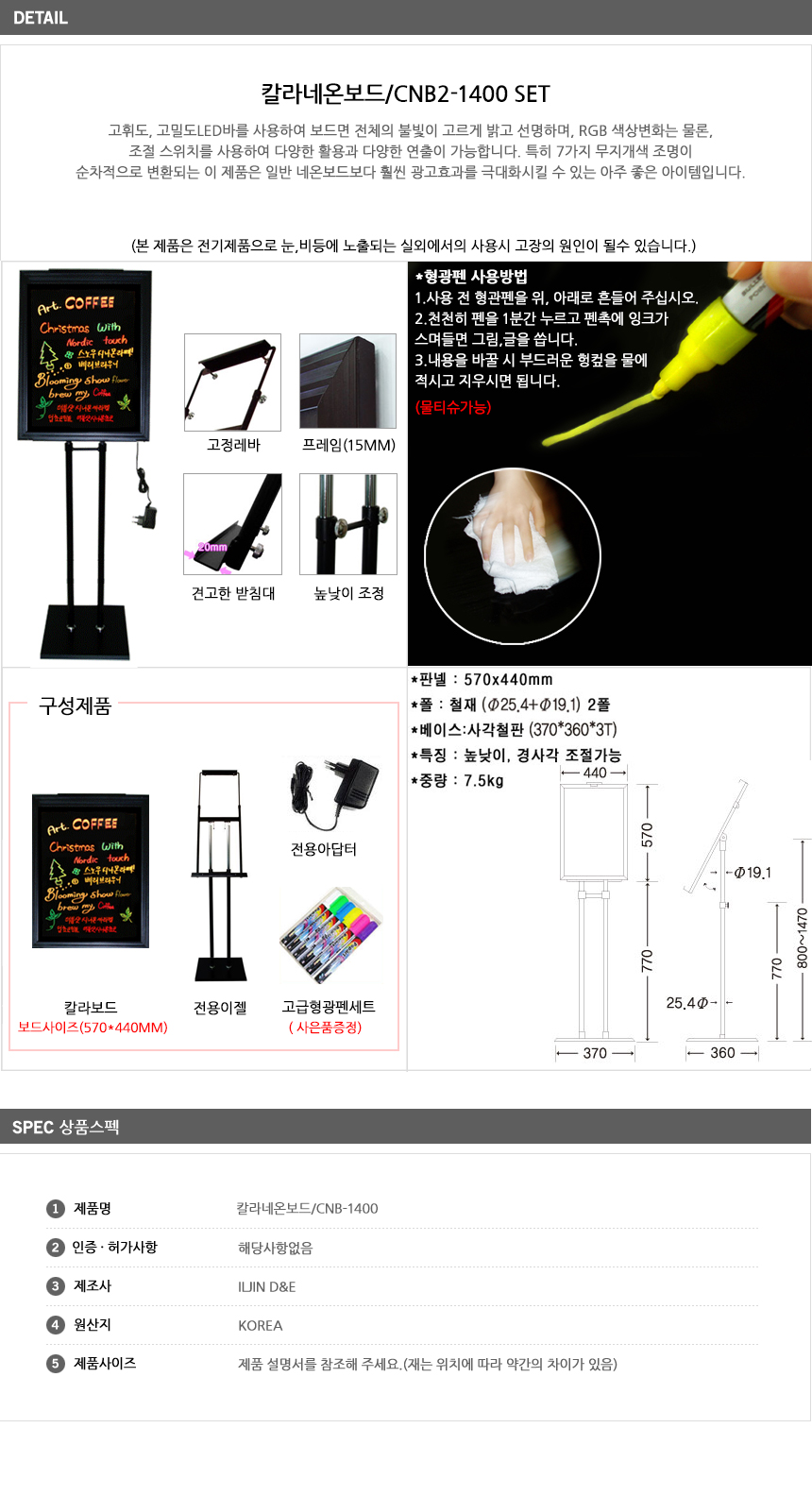 [ÀÏÁø] Ä®¶ó ³×¿Âº¸µå ¼¼Æ®(CNB2-1400, 440x570mm, 7°¡Áö ¹«Áö°³»ö, °íÈÖµµ/°í¹Ðµµ LED¹Ù, »óǰ¾È³»/±¤°í, ÀüÀÚ°Ô½ÃÆÇ, Çü±¤Ææ Æ÷ÇÔ)