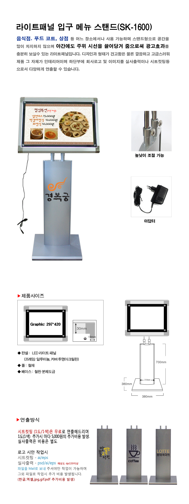 [ÀÏÁø] ¶óÀÌÆ®ÆÐ³Î ÀÔ±¸ ¸Þ´º ½ºÅĵå/Çà»ç¾È³»½ºÅĵå(SK-1600, À½½ÄÁ¡/ǪµåÄÚÆ®/»óÁ¡ ¸Þ´º½ºÅĵå, ÆÐ³Î»çÀÌÁî:297x420mm)