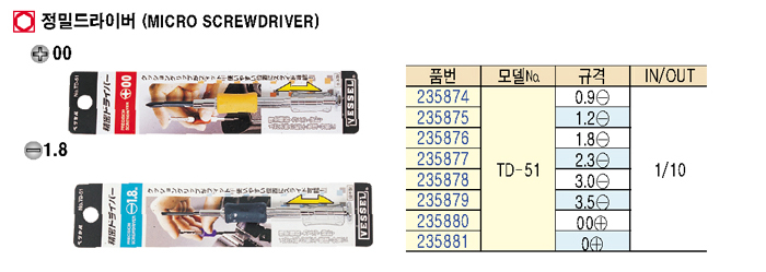 [º£¼¿] Á¤¹Ð µå¶óÀ̹ö(Micro Screwdriver) TD-51 ±Ô°Ý:0(+)