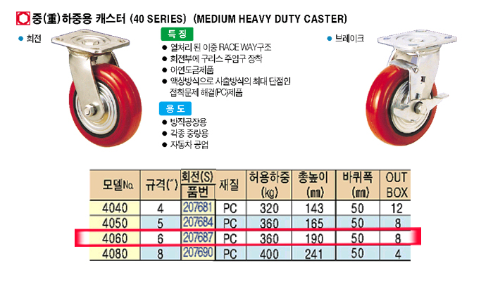 [ACE] Áß(ñì)ÇÏÁß¿ë ij½ºÅÍ(ȸÀü)-4060(S) ±Ô°Ý6":´ÜÁ¾!!