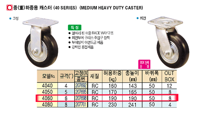 [ACE] Áß(ñì)ÇÏÁß¿ë ij½ºÅÍ(°íÁ¤)-4060 º¸±ÞÇü(R) ±Ô°Ý6":´ÜÁ¾!!