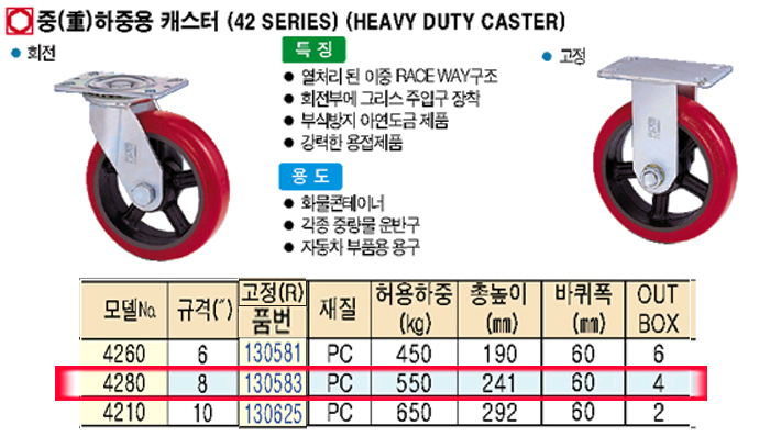 [KYUNGCHANG] Áß(ñì)ÇÏÁß¿ë ij½ºÅÍ[42 SERIES]°íÁ¤(R)-No.4280