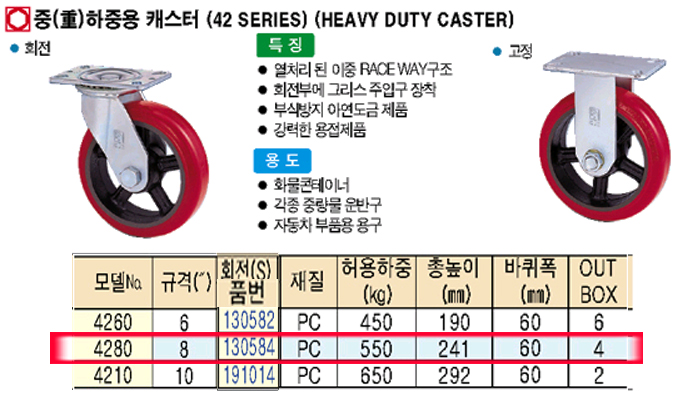[KYUNGCHANG] Áß(ñì)ÇÏÁß¿ë ij½ºÅÍ[42 SERIES]ȸÀü(S)-No.4280