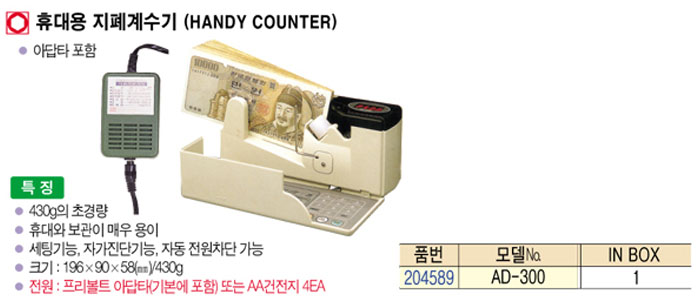 [Çѱ¹»ç¹«ÀÚµ¿È­]ÈÞ´ë¿ë ÁöÆó°è¼ö±â(HANDY COUNTER) AD-300=>Á¦Ç°´ÜÁ¾!