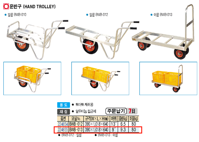 [BUSUNG] ¾Ë·ç¹Ì´½ ÇÕ±Ý ¿î¹Ý±¸(Hand Trolly)(»ç·û/4·û) - No.BWB-013(Å丶Åä ³óÀå¿ë)(ÁÖ¹®ÈÄ ¾à 7ÀÏ ¼Ò¿ä)