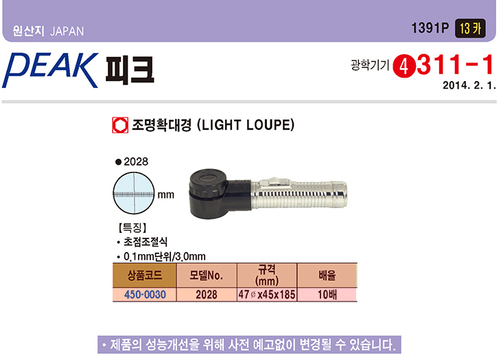 [PEAK/ÇÇÅ©]Á¶¸íÈ®´ë°æ(PEAK-2028,¨ª47x45x185mm,10¹èÁÜ/ÃÊÁ¡Á¶Àý½Ä)(LIGHT LOUPE)