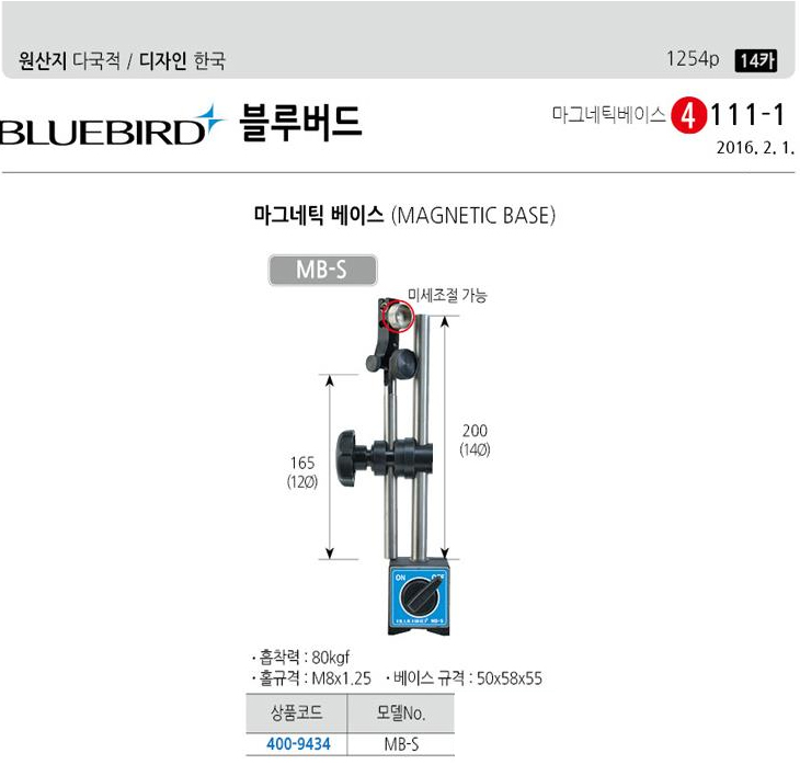 [ºí·ç¹öµå] ¸¶±×³×ƽº£À̽º(MB-S, ´ÙÀ̾óÀεð°ÔÀÌÆ®¿ë, Ȧ±Ô°Ý:M8x1.25/º£À̽º±Ô°Ý:50x58x55mm)(Magnetic Base)