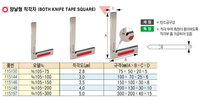 [SUNGJIN ENG]¾ç³¯Çü Á÷°¢ÀÚ(BOTH KNIFE TAFE SQUARE)No.105-100