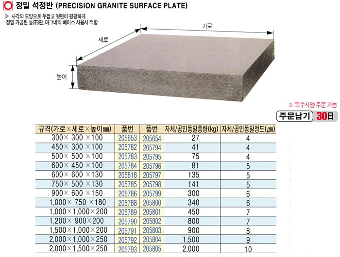 [MIKRO]Á¤¹Ð ¼®Á¤¹Ý(PRECISION GRANITE SURFACE PLATE)2000 x 1000x 250(°øÀÎ)
