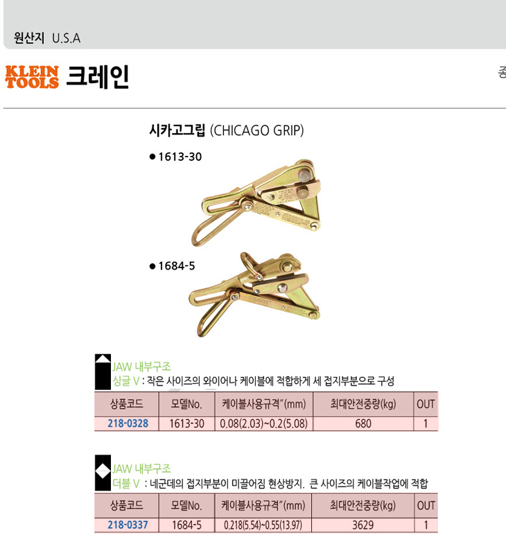 [Å©·¹ÀÎ] ½ÃÄ«°í ±×¸³(1684-5, ´õºíV, ÃÖ´ë¾ÈÀüÁß·®:3629Kg, ÄÉÀ̺í±Ô°Ý:0.218~0.55ÀÎÄ¡/5.54~13.97mm)(Chicago Grip)
