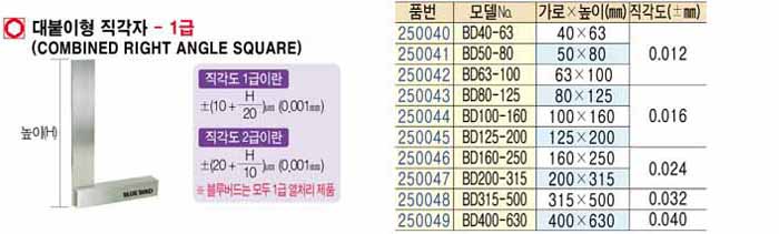 [BLUEBIRD] ´ëºÙÀÌÇü Á÷°¢ÀÚ - 1±Þ (COMBINED RIGHT ANGLE SQUARE) BD100-160