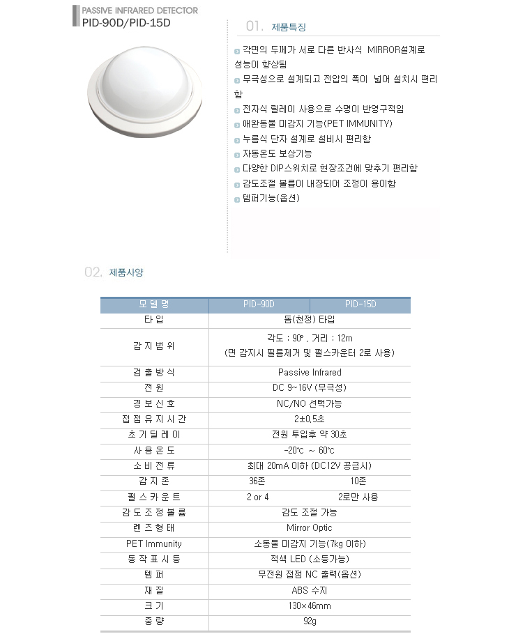 [HT] ¿­¼±°¨Áö±â(PID-90D, µ¼Å¸ÀÔ, 90µµ/12¹ÌÅÍ, õÁ¤Çü, ÀÛÀºµ¿¹° ¹«°¨ÁöÇü)(Passive Infrared Detector)