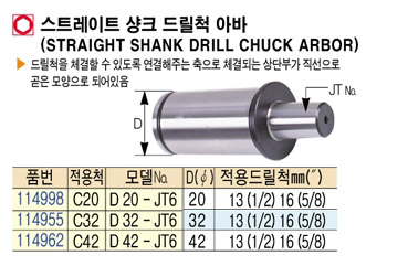 [¾ç¿ìÅ×Å©] D20-JT6 ½ºÆ®·¹ÀÌÆ® ¼§Å© µå¸±Ã´ ¾Æ¹Ù(STRAIT SHANK DRILL CHUCK ARBOR)