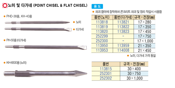 [žçÆÄ¿ö] ³ë¹Ì ¹× ´Ù°¡³×(Point Chisel&Flat Chisel) 30x1000mm