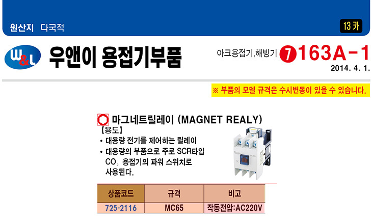 [¿ì¿£ÀÌ] ¸¶±×³×Æ®¸±·¹ÀÌ(MC65, AC220V)(Magnet Relay)