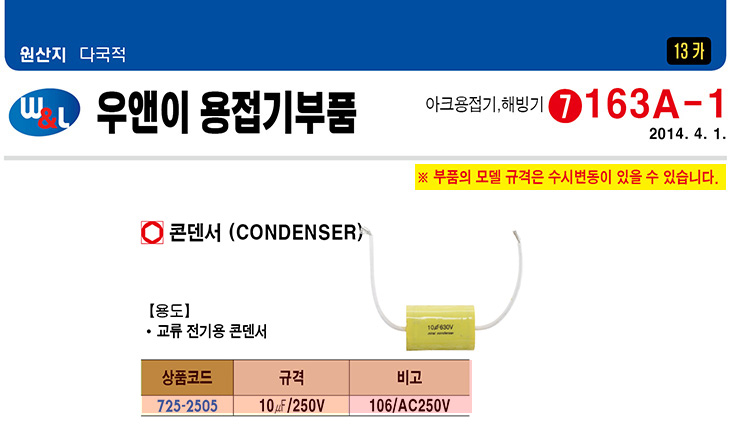 [¿ì¿£ÀÌ] Äܵ§¼­(10uF/250V, 106/AC250V)(Condenser)(5°³¹­À½)