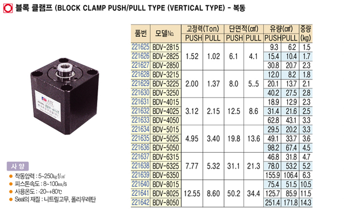 [KJF] BDV-5015 ºí·Ï Ŭ·¥ÇÁ (BLOCK CLAMP PUSH/PULL TYPE (VERTICAL TYPE)-º¹µ¿ (ÁÖ¹®Àü Àç°íÈ®Àοä¸Á)