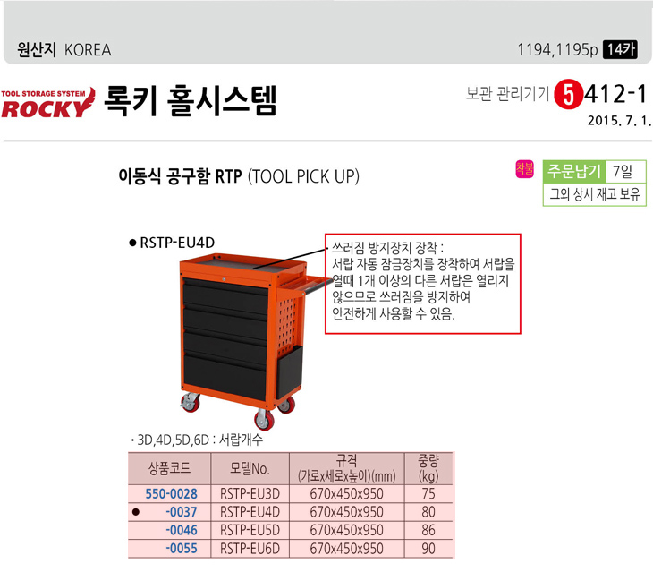 [·ÏŰ/ROCKY] À¯·´Çü À̵¿½Ä°ø±¸ÇÔ(RSTP-EU6D, 670x450x950mm, À¯·´½Ä)(Tool Pick up)
