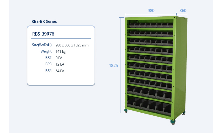 [·ÏŰ/ROCKY]ºó·¢°ø±¸º¸°ü·¢ ºÎǰº¸°üÇÔ/ijºñ³Ý(RBS-B9R76, 980x360x1825mm, °íÁ¤Çü, BR3 12°³+BR4 64°³ Æ÷ÇÔ)(Binrack Stand)