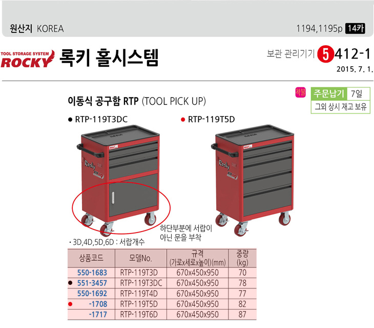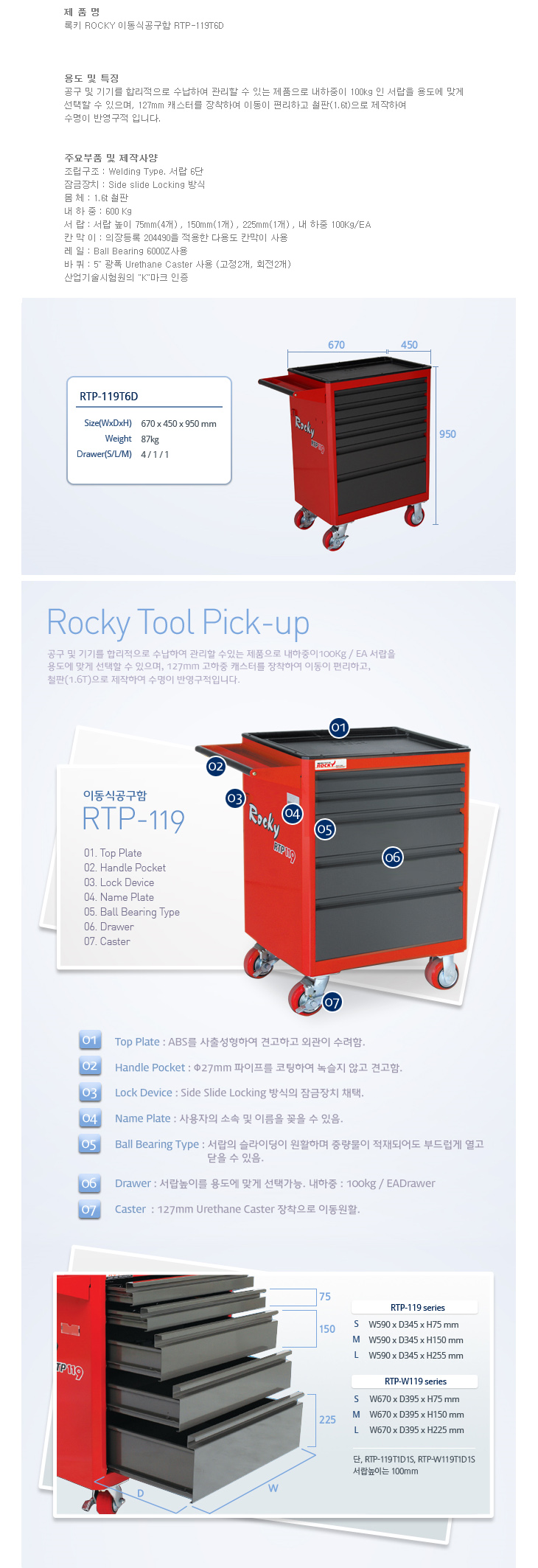 [·ÏŰ/ROCKY] À̵¿½Ä°ø±¸ÇÔ(RTP-119T6D, 670X450X950mm)(Tool Pick up)
