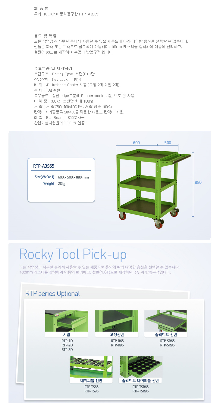 [·ÏŰ/ROCKY] À̵¿½Ä°ø±¸ÇÔ(RTP-A3S65, 600x500x880mm)(Tool Pick up)