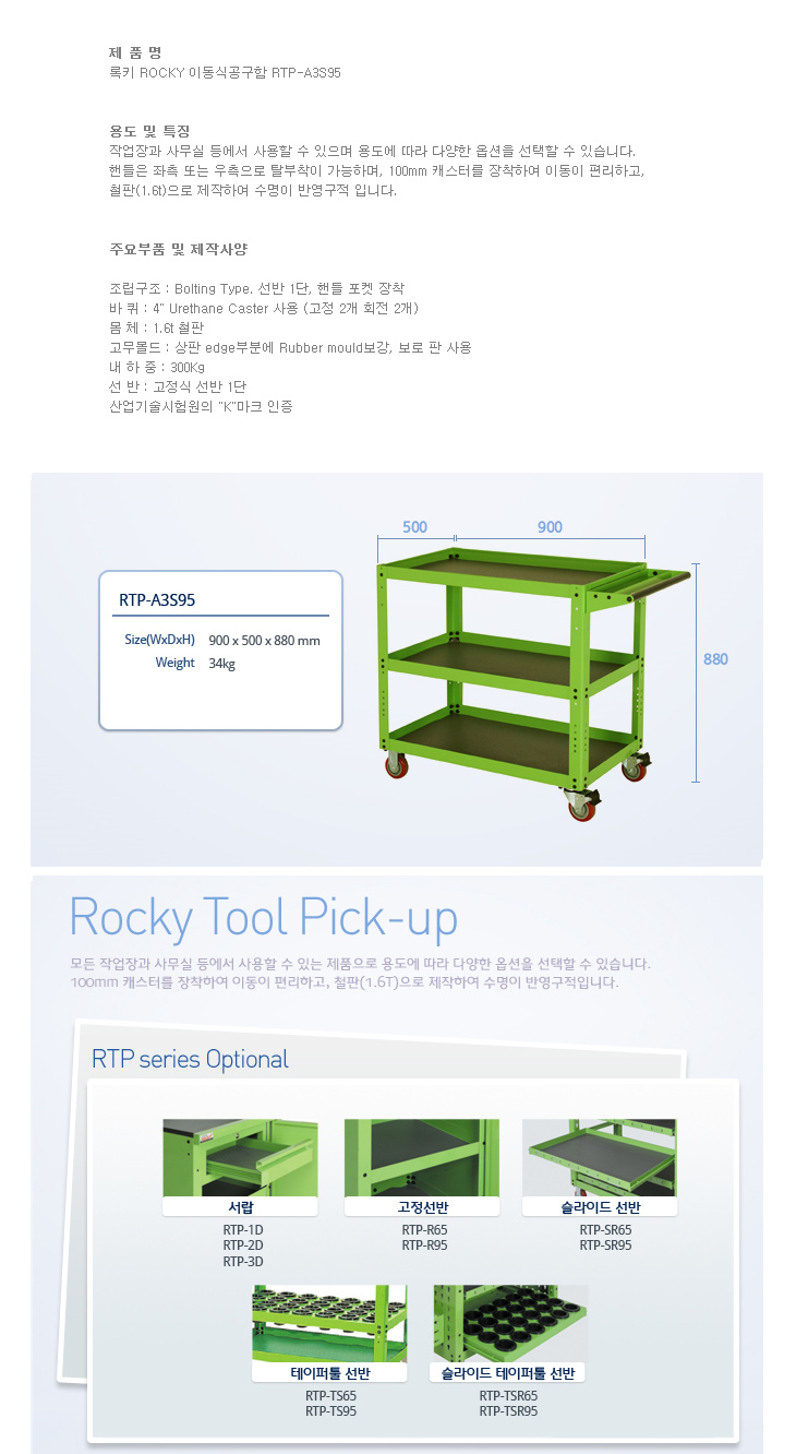 [·ÏŰ/ROCKY] À̵¿½Ä°ø±¸ÇÔ(RTP-A3S95, 900x500x880mm)(Tool Pick up)
