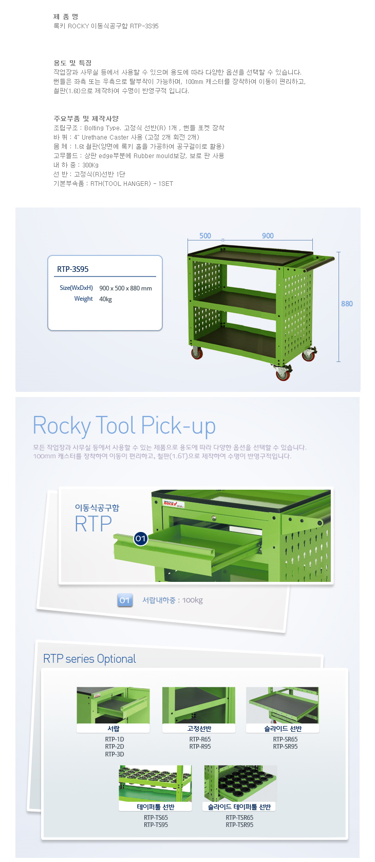 [·ÏŰ/ROCKY] À̵¿½Ä°ø±¸ÇÔ(RTP-3S95, 900x500x880mm)(Tool Pick up)