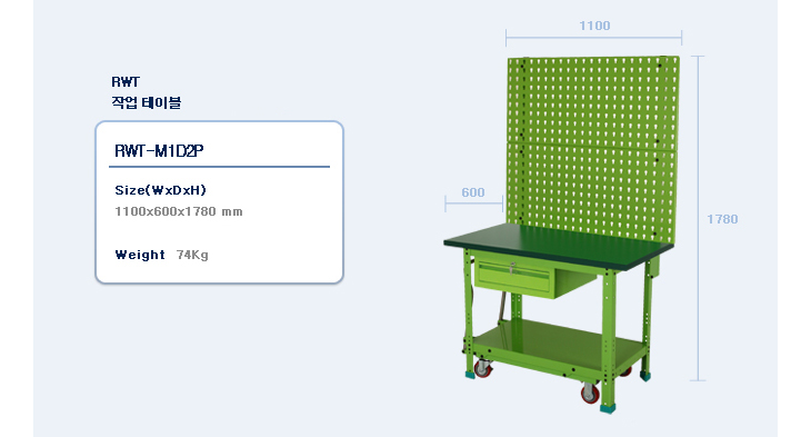 [·ÏŰ/ROCKY]ÀÛ¾÷Å×À̺í(RWT-M1D2P, À̵¿½Ä, 1100x600x1780mm)(Work Table)