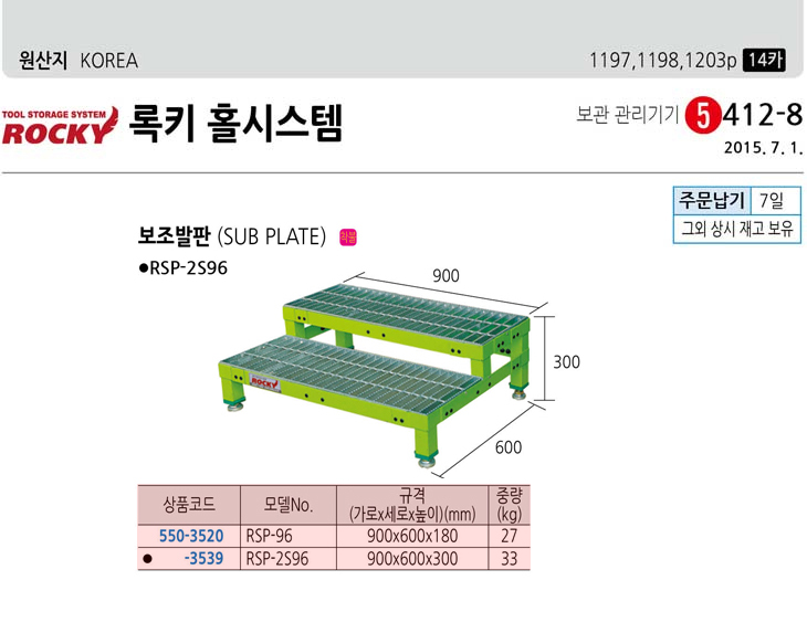 [·ÏŰ/ROCKY] º¸Á¶¹ßÆÇ(RSP-96, 900x600x180mm)(Sub plate)