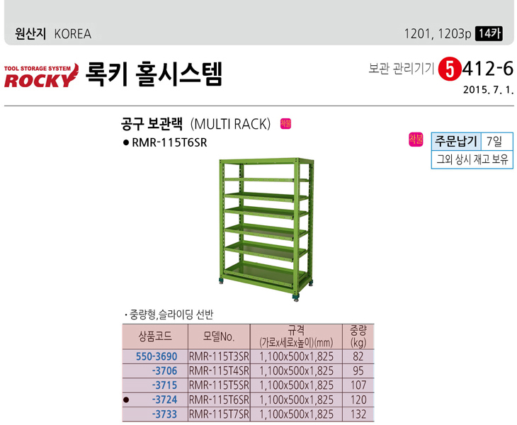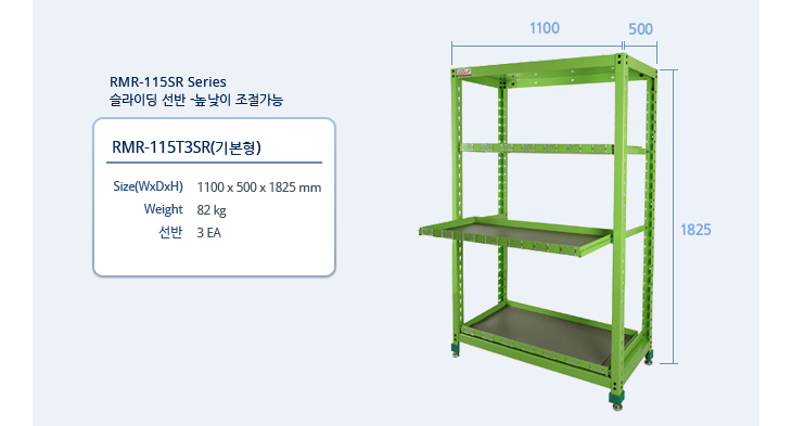 [·ÏŰ/ROCKY]Áß·®Çü °ø±¸º¸°ü·¢(RMR-115T3SR, ½½¶óÀ̵ù¼±¹Ý 3°³, 1100x500x1825mm)(Multi Rack)