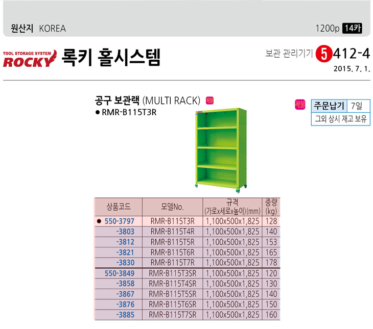 [·ÏŰ/ROCKY]°ø±¸ º¸°ü·¢/ijºñ³Ý(RMR-B125T5R, ¿ÍÀ̵å, °íÁ¤½Ä¼±¹Ý 5°³, 1200x500x1825mm)(Multi Rack)