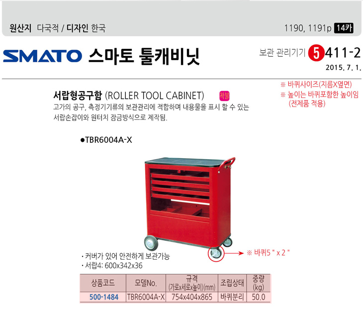 [½º¸¶ÅäÅøÄɺñ³Ý] ·Ñ·¯ À̵¿Çü ¼­¶øÇü°ø±¸ÇÔ(TBR6004A-X, 754x404x865mm)(Roller Tool Cabinet)=>Á¦Ç°´ÜÁ¾!